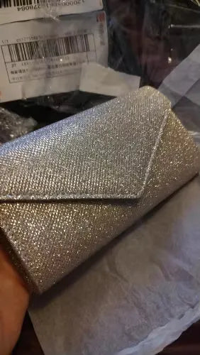 Shiny silver with glittering details. Our Glam Silver Evening Clutch is designed to enhance your elegance. Its sleek envelope design is complemented by a detachable chain strap, offering versatility. Perfect for weddings, parties, or any formal event. It holds all your essentials with style and grace. Make an unforgettable statement wherever you go.