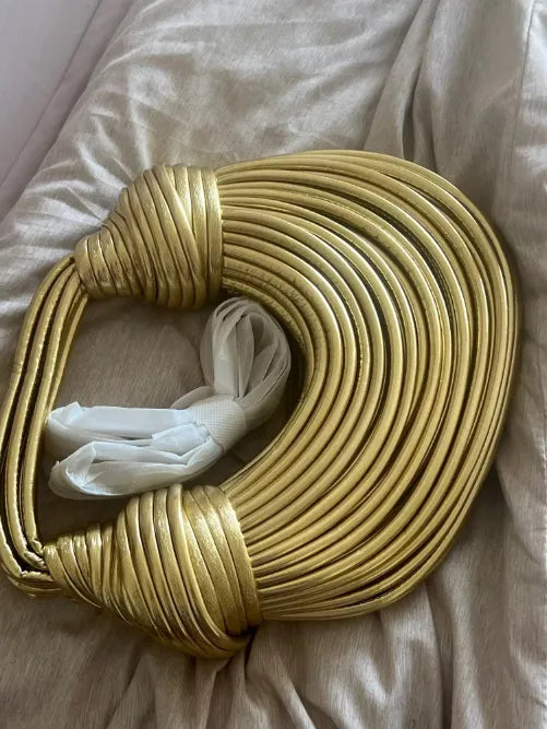 Every fashionista knows the power of a statement piece. This Gold Luxury Rope Clutch does exactly that. Impress at any event with its chic handwoven design and spacious interior. More than just a bag, this is an expression of style identity and personal flair. Pair it with any evening gown or casual chic attire to create a look that's both trendy and timeless. Discover the perfect blend of luxury and functionality.